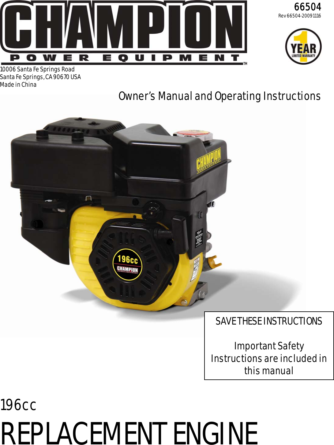 Portable power generator this unit is a gasoline engine driven alternating current ac generator. Your product s model number. 196cc manual start engine powered generators. View and download champion power equipment 46515 owner s manual and operating instructions online.